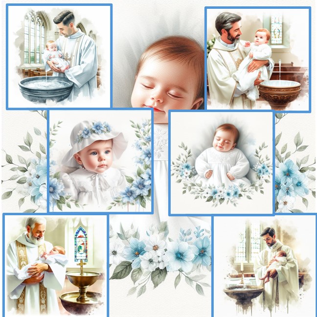 Depicting the special ceremony where the young child is baptised into the faith, this lovely series of cards capture the charm of the occasion.