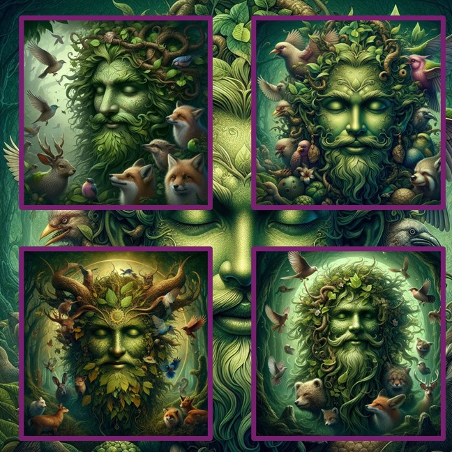 Cards showing Pagan Green Man.
