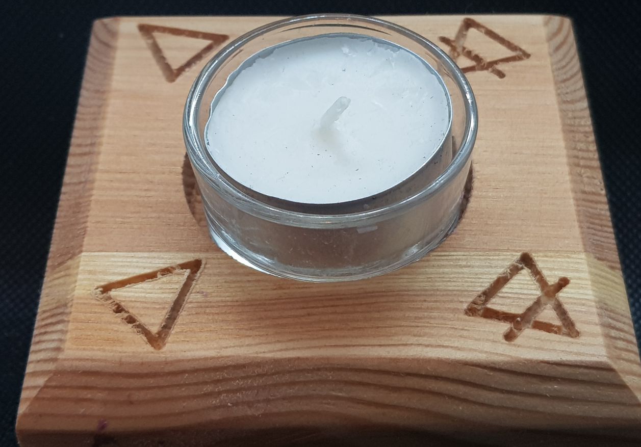 Crafted from Pine with a central tealight and element symbols carved at each corner these mini altars can serve equally as an spiritual ornament or as part of your ritual requirements when space is at a premium. Available in natural wood or a choice of vibrant colours, all finished with Danish oil to enhance the grain of the wood.