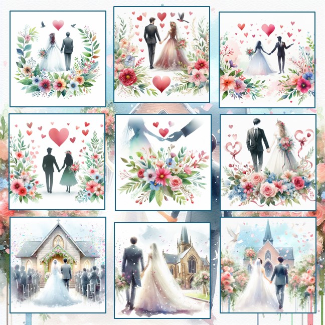 A beautiful series of watercolour style cards celebrating the life long bonding of a couple featuring classic symbols of the joyous day.